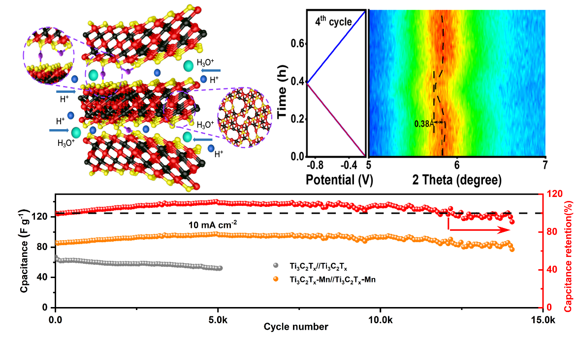 图:多孔MXene充放电机制及全固态超级电容器电化学性能