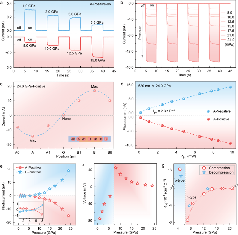 1:压力诱导BiI3p-n导电类型切换导致自驱动光电流的极性反转