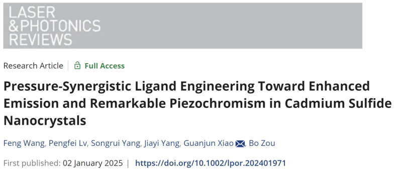 LPR | 肖冠军教授在硫化镉纳米晶发光的高压调控研究取得重要进展