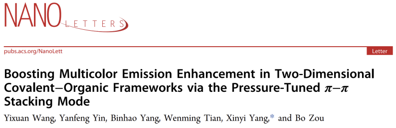 Nano Lett.| 杨新一教授利用高压调控π−π堆叠构型实现二维共价有机框架材料的多色荧光增强