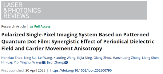 王英惠教授联合材料学院张佳旗教授等人利用DVD的周期性结构,成功制备出具有偏振特性的CsPbBr3量子点薄膜光电探测器,并实现了单像素偏振成像系统。这一创新不仅揭示了周期性介电场与载流子运动的协同效应,还为量子点材料在偏振成像领域的应用开辟了新路径。相关研究成果以“Polarized Single-Pixel Imaging System Based on Patterned Quantum Dot Film: Synergistic Effect of Periodical Dielectric Field and Carrier Movement Anisotropy”为题发表在《Laser & Photonics Reviews》上。