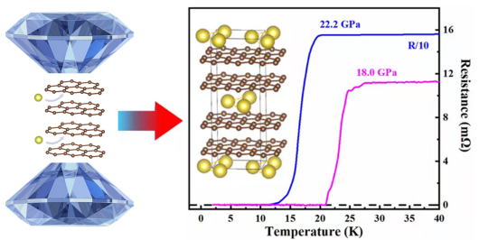 近日,免费看片 高压与超硬材料全国重点实验室王洪波教授等人在新型碳基超导体研发方面获得新进展。自从发现超导电性以来,新型高温超导体的探索一直是凝聚态物理与材料科学领域的研究热点。低维度长期以来被认为是促进高温超导的重要因素。石墨插层化合物(graphite intercalation compounds, GICs)作为典型的二维材料体系,其独特的电子结构和可调控的层间相互作用,使其在探索高温超导机理与新型超导材料方面备受关注。然而,尽管经过多年的努力,石墨插层化合物中的超导转变温度最高纪录仍停留在2007年报道的CaC₆体系,在高压下仅为15.1 K。