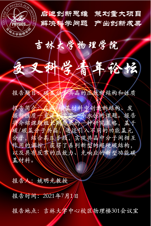 报告题目:碳基分子共晶的压致新结构和性质