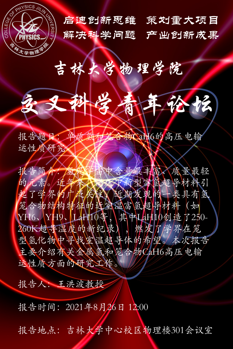 报告题目:单质氢和笼合物CaH6的高压电输运性质研究