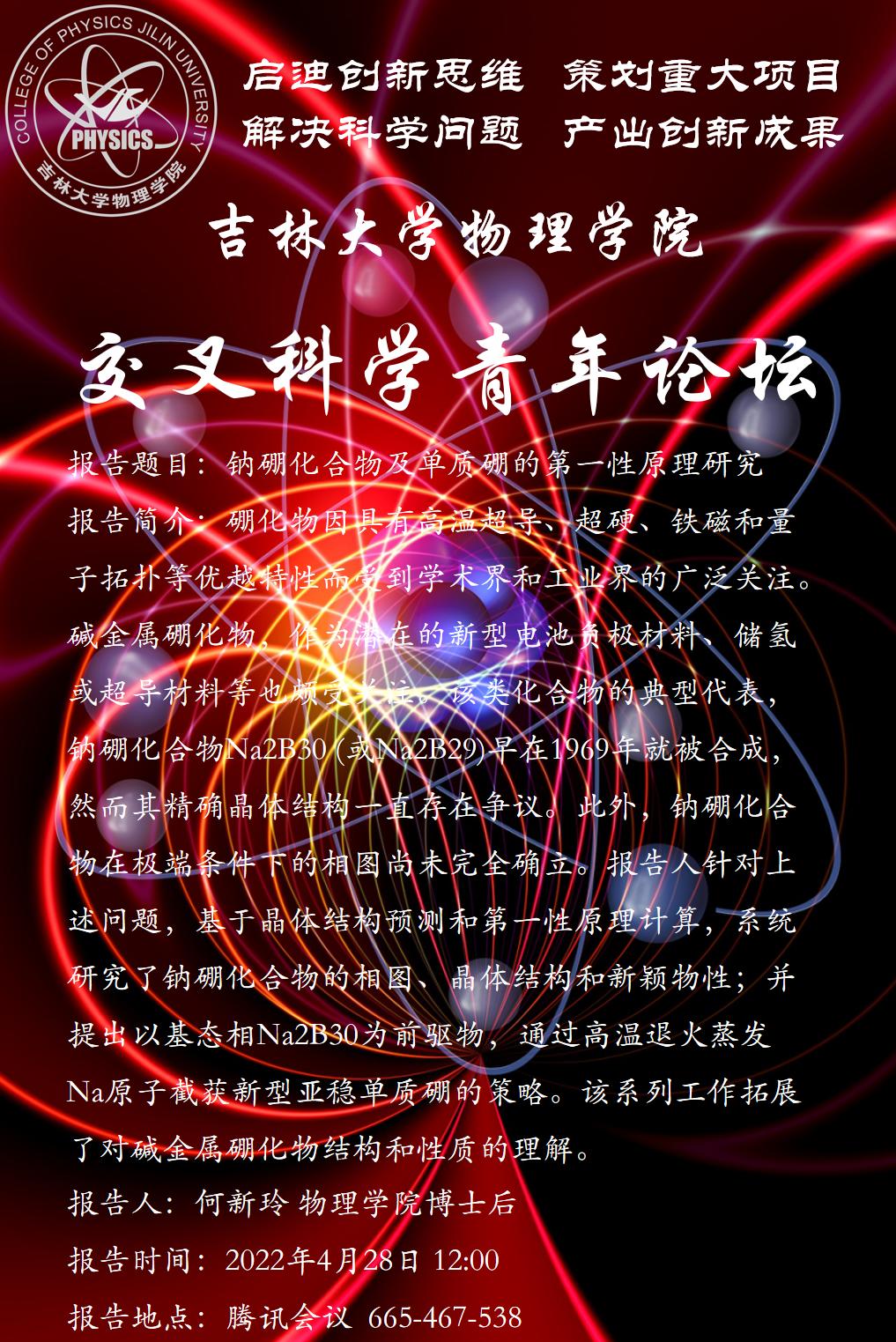 报告题目: 钠硼化合物及单质硼的第一性原理研究