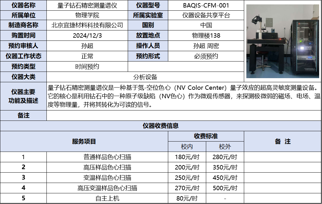 量子钻石精密测量谱仪 BAQIS-CFM-001