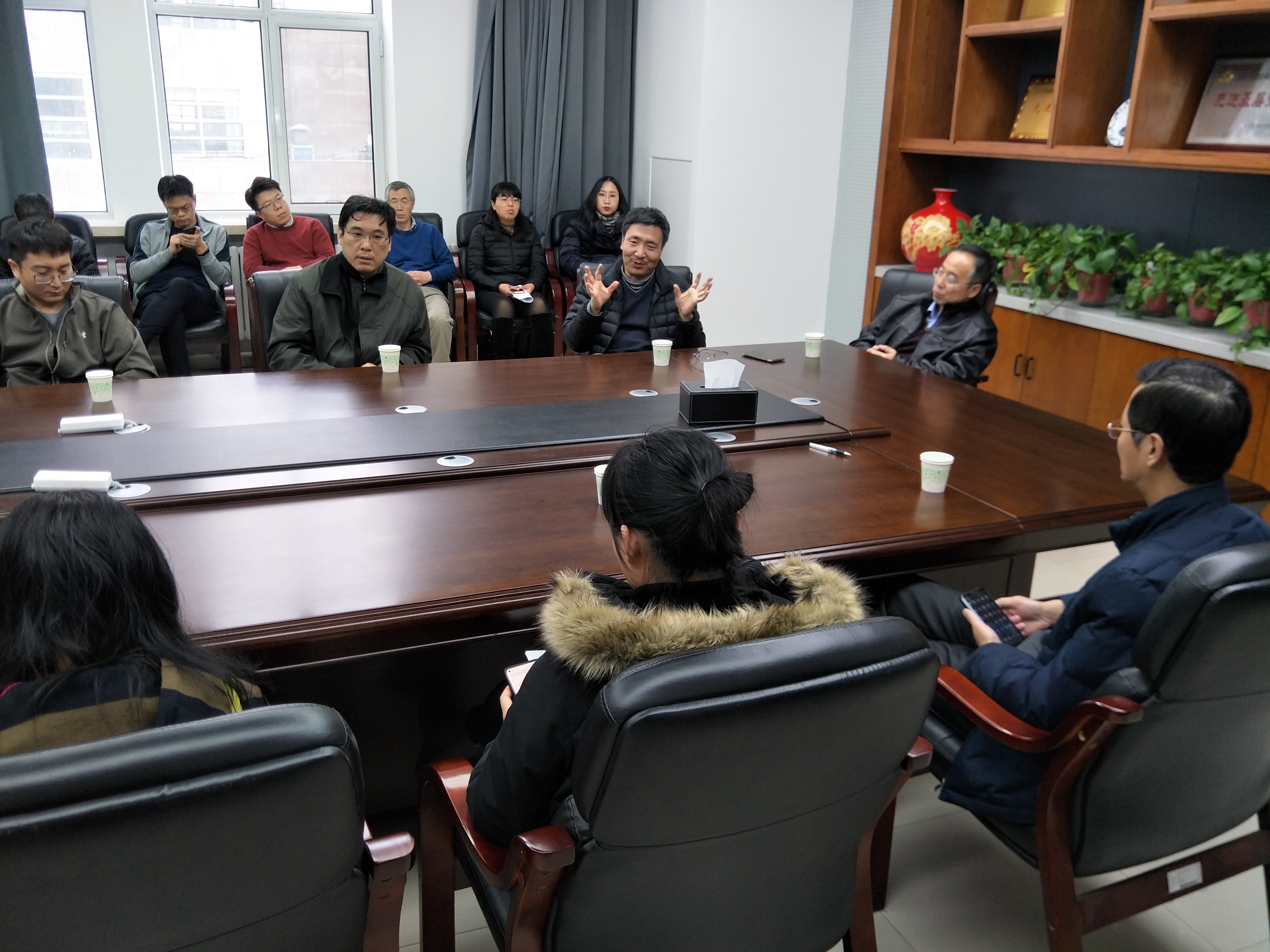 教学委员会主任郑以松教授和前任院教学委员会主任闫羽教授主讲,副院长王海军以及本科理论课程任务的教师出席会议。