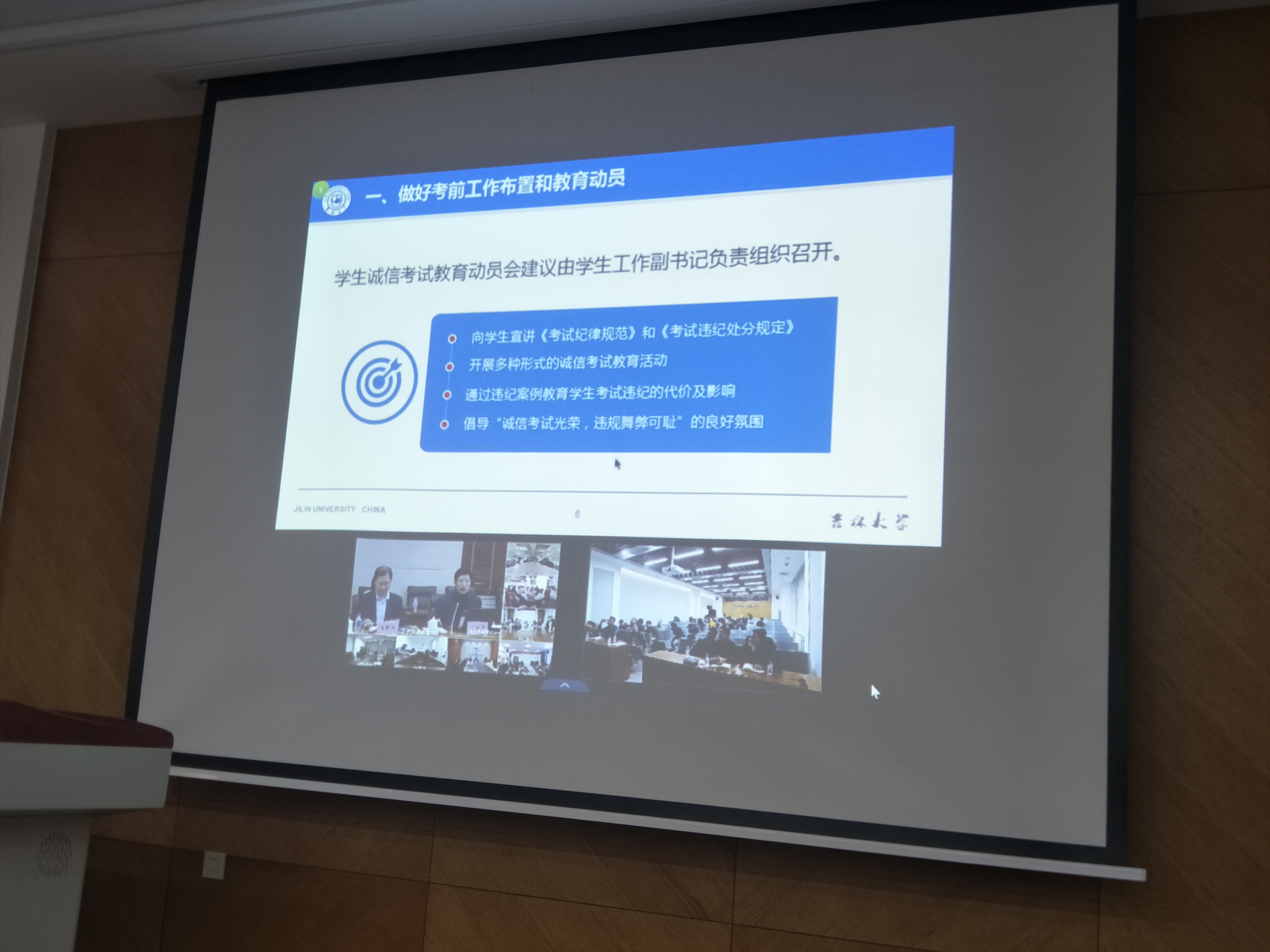 通过本次会议,学院教师对考试考务工作有了更深层次的认识。相信在考试期间,各课程团队和监考人员能够做到时刻尽职尽责,规范考风考纪,确保期末考试考务工作顺利开展。