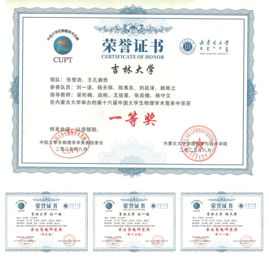 代表队再创佳绩,成功蝉联一等奖,延续了我校在该项赛事中的卓越表现。这一成绩是学校长期坚持重视本科生创新和实践能力培养的成果体现,彰显了吉大学子在物理学科领域深厚的理论及实验功底。