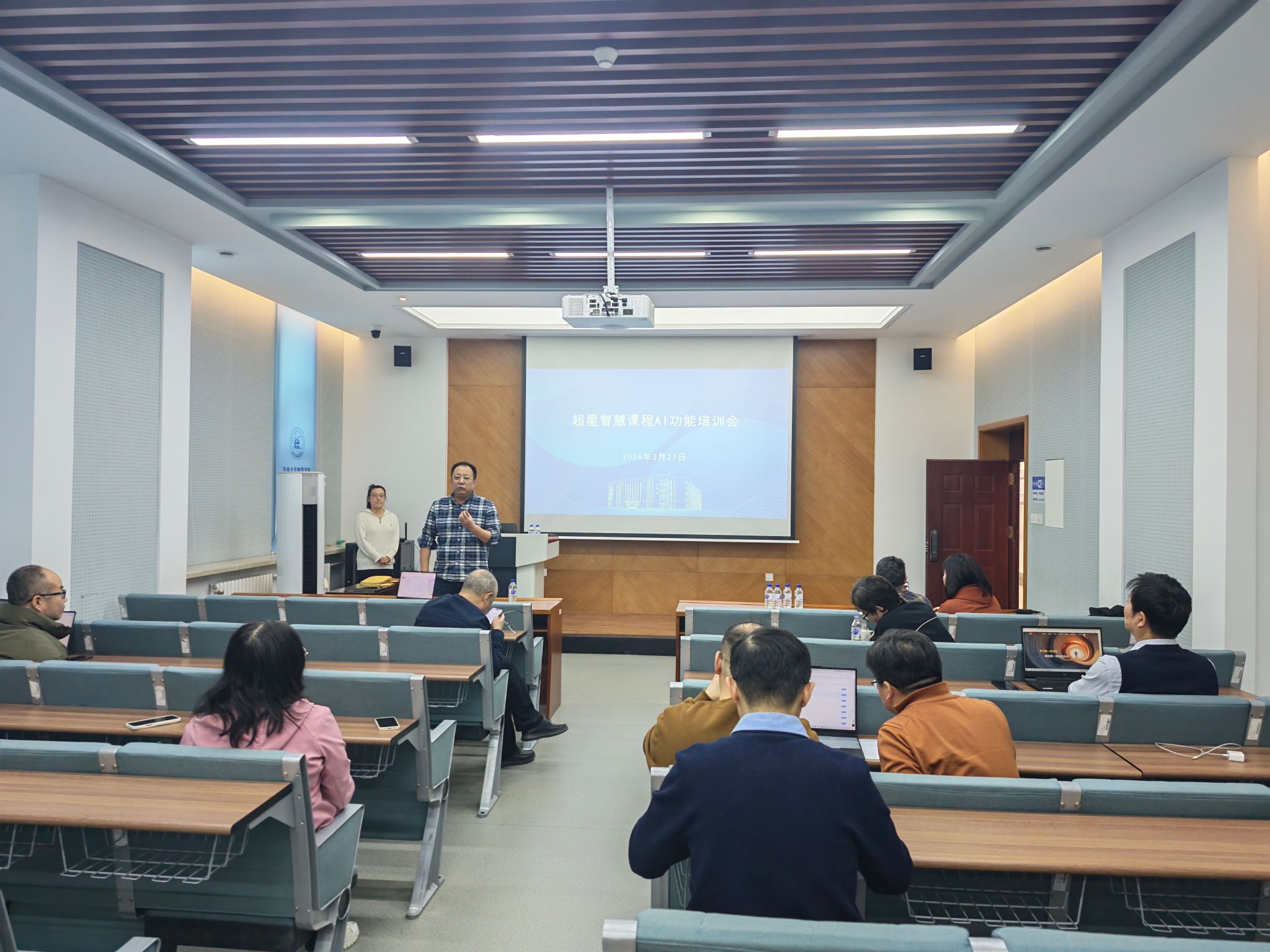 副院长王鑫介绍了本次培训的背景与目的。他指出,人工智能时代的到来将深刻变革物理学科课程的教学模式、学习范式与评价方式,希望各位教师主动适应从传统教学向智慧育人的转型,积极探索人工智能与物理教学的深度融合路径。
