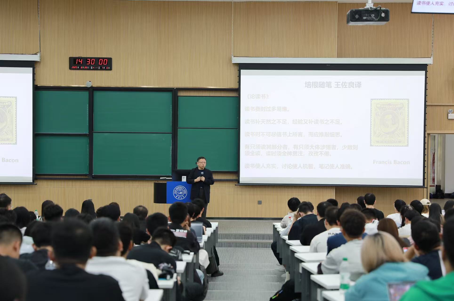 院长邹勃教授主讲,党委副书记杨讴菡主持,2025级全体研究生参加。