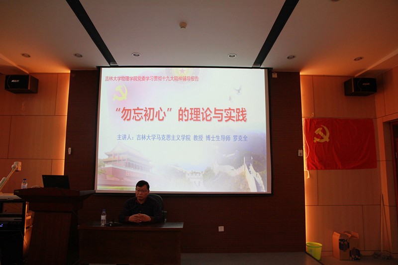 党委邀请了马克思主义学院罗克全教授作了题为《“勿忘初心”的理论与实际》的专题辅导报告。报告会由学院党委书记孟文卓同志主持,学院领导班子成员和全院100多名师生党员一起参加了报告会。
