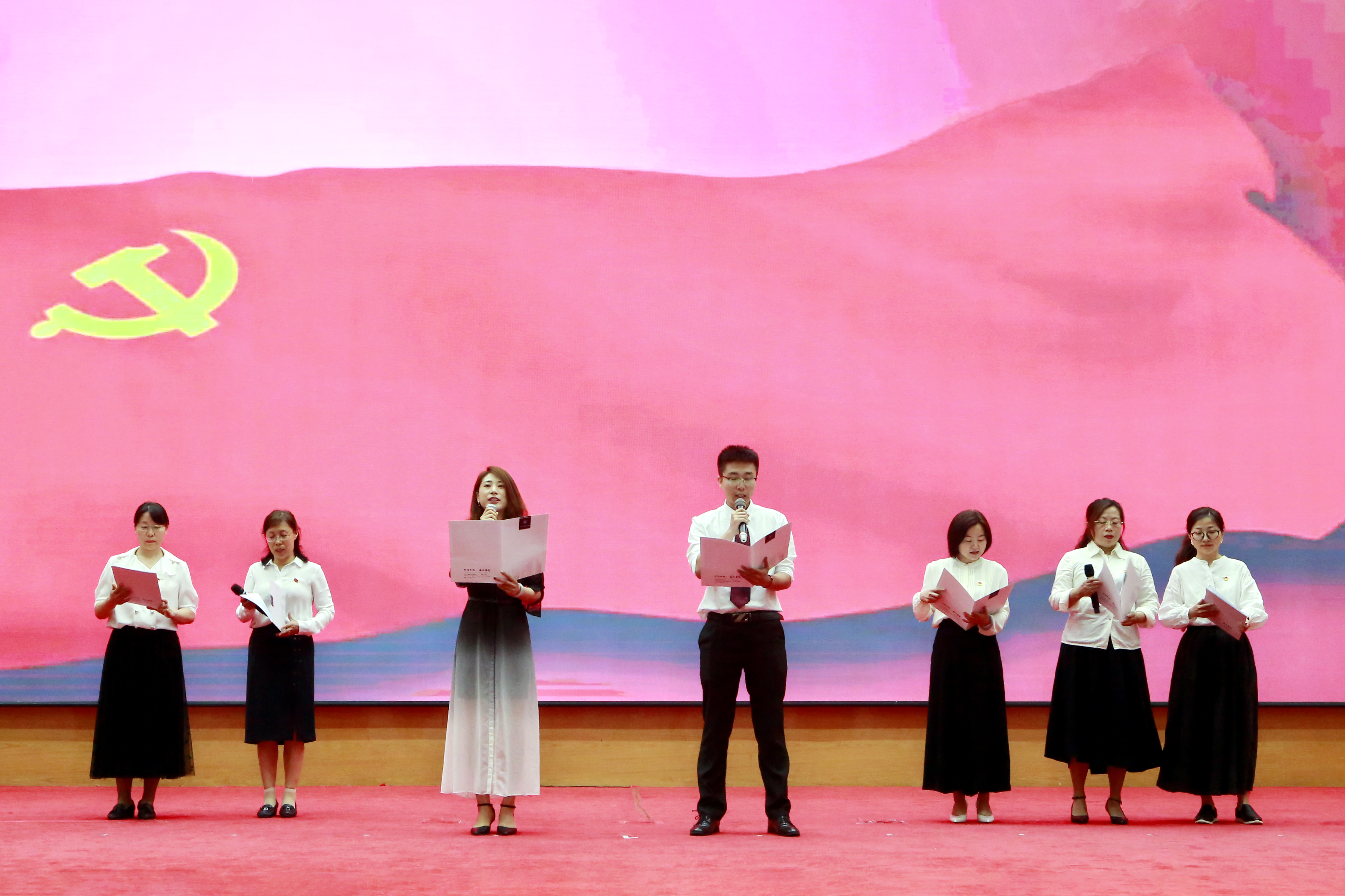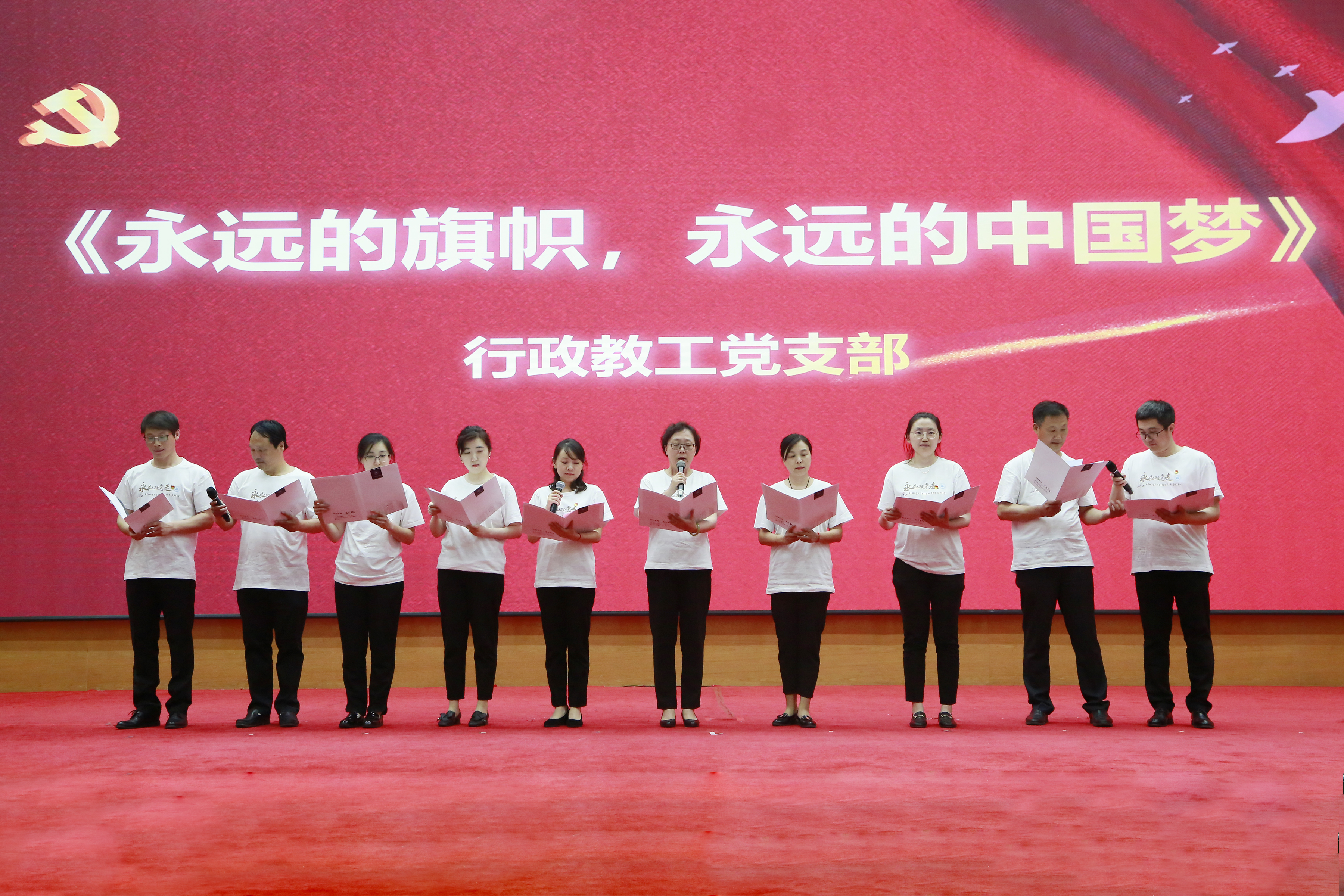 在东荣报告厅隆重举办庆祝建党100周年“红心向党、扬帆远航”诗歌朗诵会。出席本次活动的人员为学院全体党政班子成员、师生党员、入党积极分子。诗歌朗诵会由学院党委副书记兼副院长杨讴菡主持。