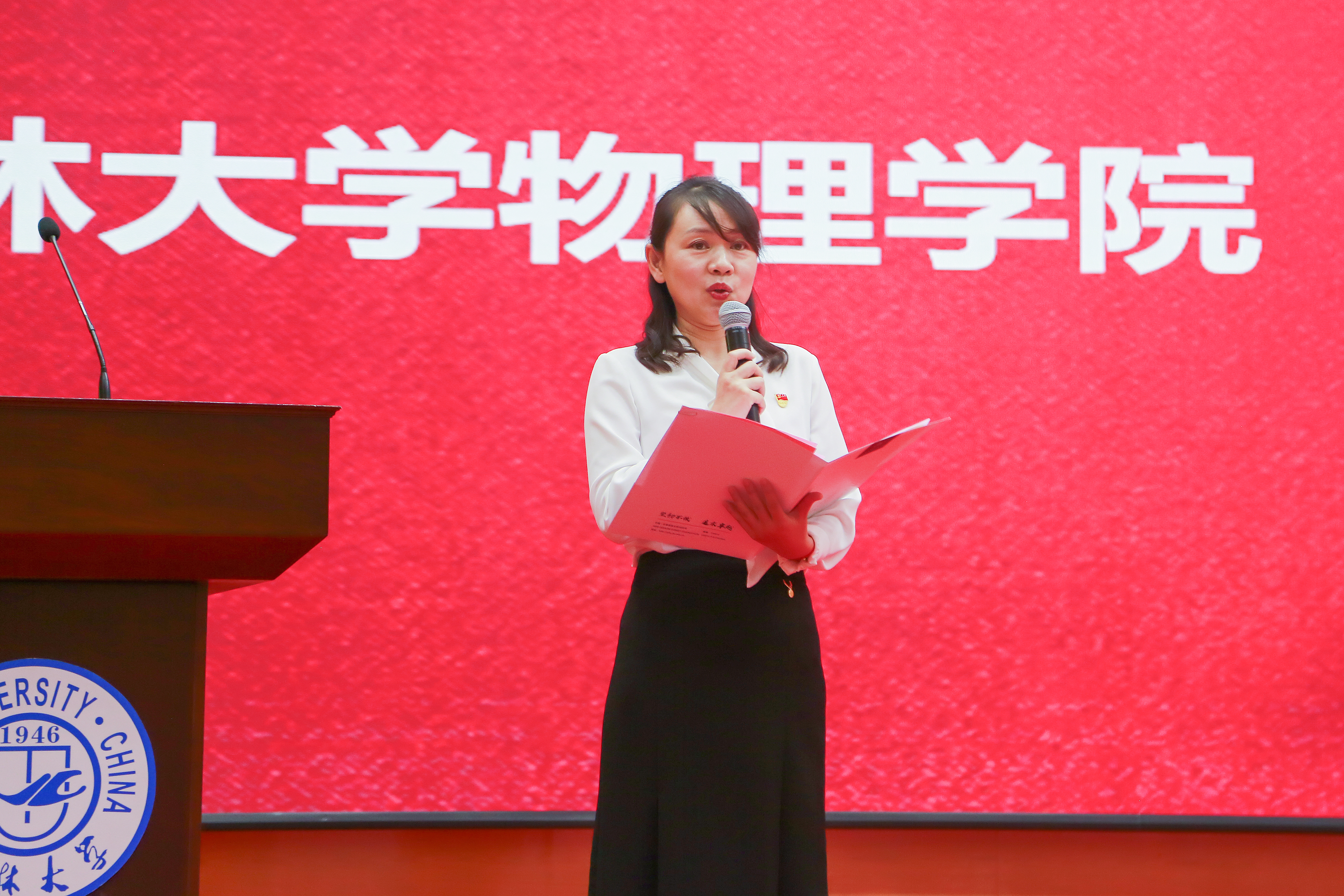 鲜红的党旗,经历了100个春秋的洗礼,显得格外飒爽多娇,庄严的党徽,经过了100载的锤炼,显得更加坚若磐石。胸怀千秋伟业,恰是百年风华,全院师生党员将以此次活动为契机,继续把党史学习教育落地生根,发扬“坚韧不拔、追求卓越”的物理人精神,以更加饱满的热情和干劲投入到一流学科建设实践中,以永不懈怠的精神状态、一往无前的奋斗姿态,为夺取党的伟大事业新胜利而不懈奋斗!
