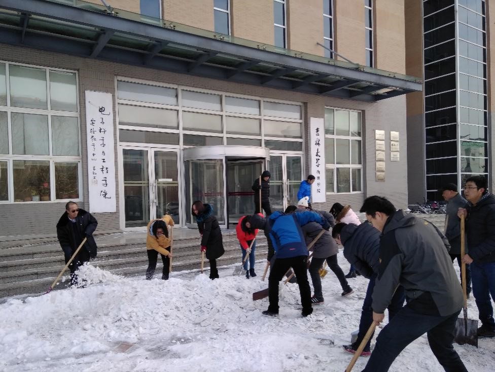 师生树立了榜样,尽显吉大物理人坚韧不拔、斗志昂扬的英雄本色。向参加扫雪的可爱的老师和学生们致敬!