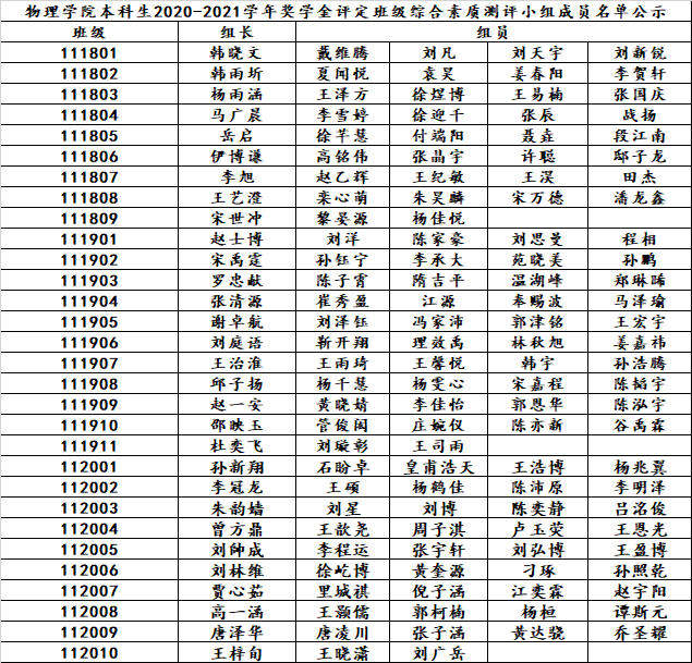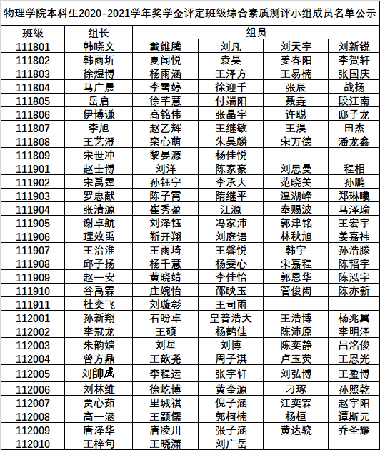 根据《免费看片 本科生学年奖学金评选办法》、《免费看片 优秀本科学生评选办法》、《免费看片 优秀本科学生干部评选办法》,经免费看片 奖助工作领导小组研究确定免费看片 本科生2020-2021学年奖学金评定班级综合素质测评小组成员名单如下: