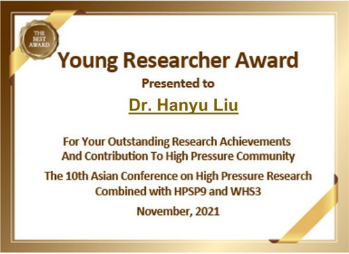 2021年11月22日,亚洲高压物理协会将第十届亚洲高压会青年科学奖(Young Researcher Award)授予免费看片