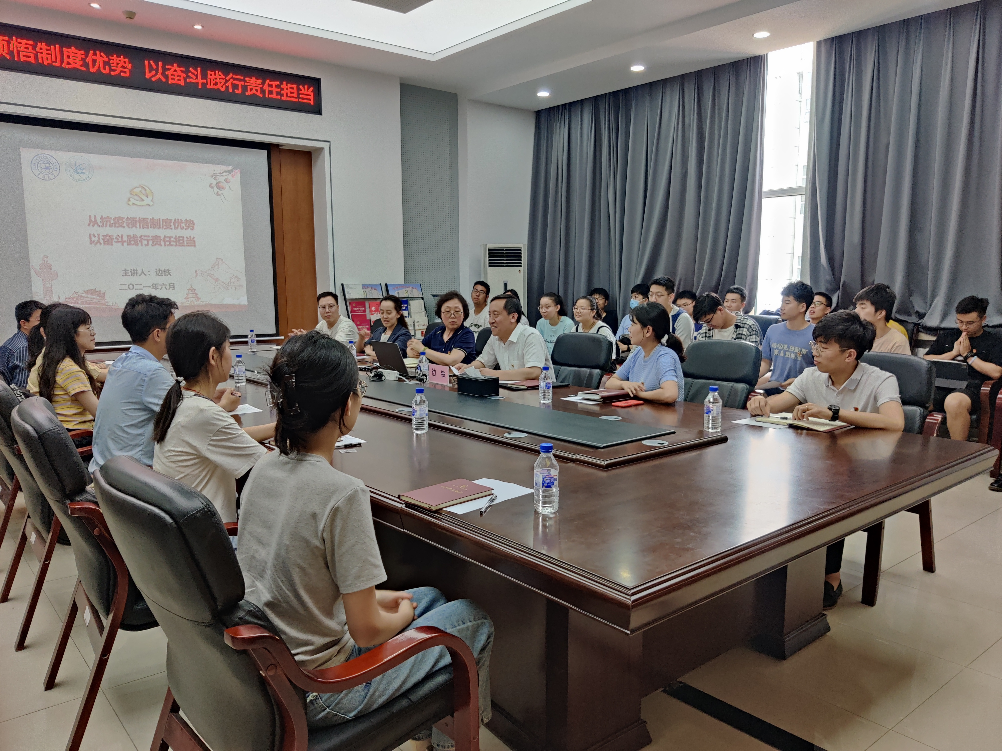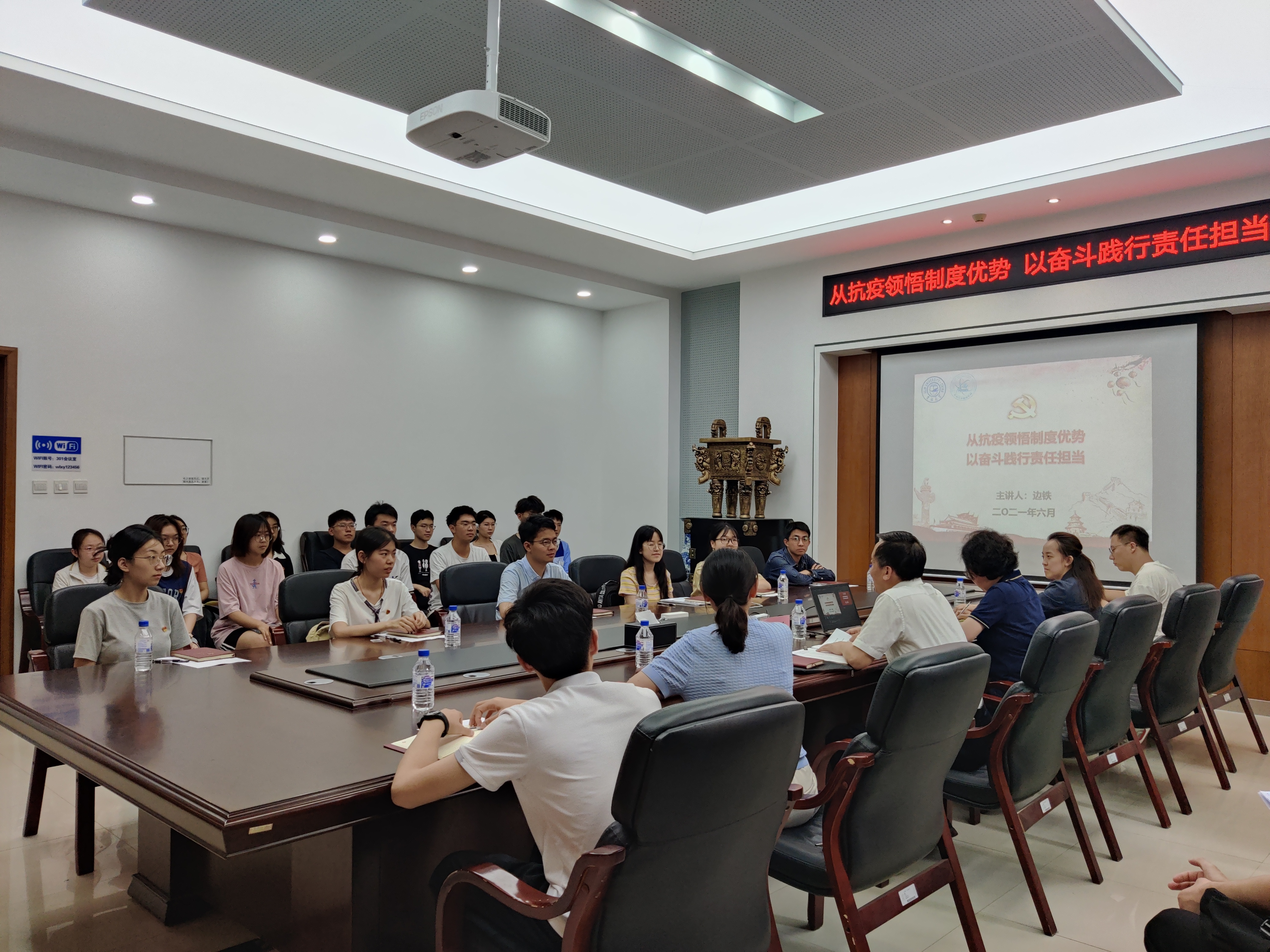 在座谈阶段,支部党员纷纷谈到抗击疫情过程中感受到强大的中国力量。特别是几位2017级唐敖庆理科试验班的毕业生党员,谈到疫情初期最严重时在国家、学校多方帮助下,辗转回国,亲身感受到国内外抗疫差距,感受到祖国的强大。与会同学纷纷表示要用自身行动捍卫中国特色社会主义制度、捍卫中国共产党的领导,筑牢信仰之基,努力发挥党员先锋模范作用,做中国特色社会主义事业的建设者和接班人。