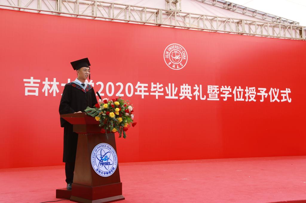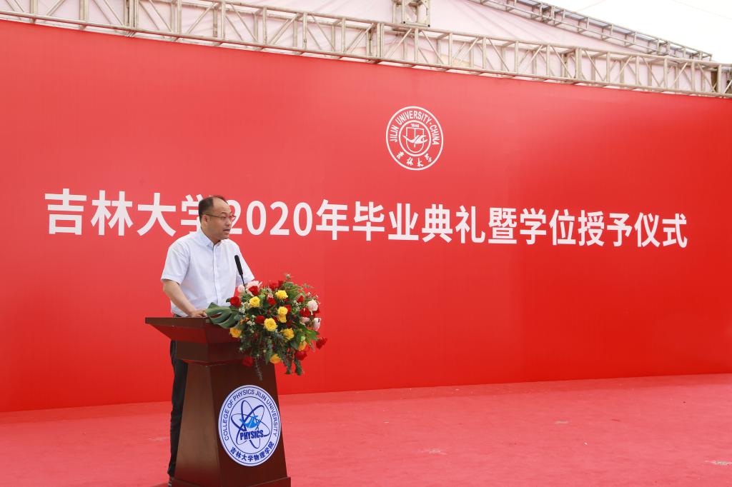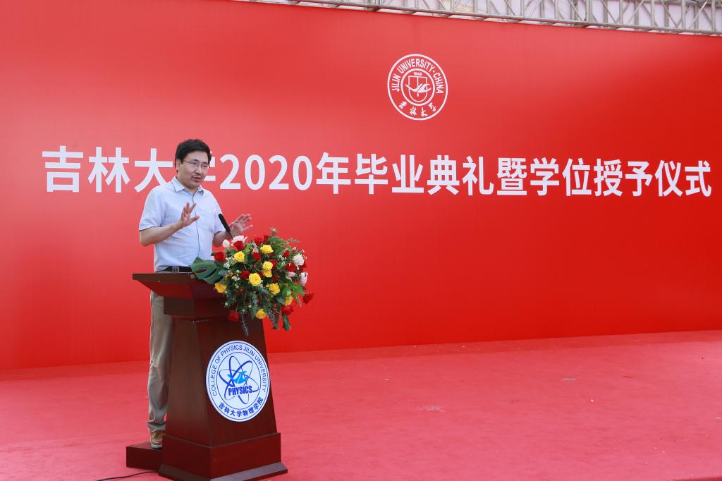 院长马琰铭教授代表学院向全体毕业生表示衷心的祝贺,并结合当前的国内外形势向全体毕业生同学提出了四点希望。首先,要学会应对挫折,继续发扬 “坚韧不拔,追求卓越”的吉大物理精神,在挫折中提高自己;其次,要学会爱与包容,以发展的眼光去分析问题;第三,要学会自主创新,不仅要取得从1到N的跟踪式进步,更要取得从无到有的关键性突破,为攻克我国目前在科技领域的技术难题贡献力量;第四,要学会自主学习,充分发挥自主学习能力,成为祖国发展需要的复合型人才。