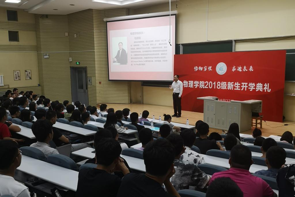 ,开始大学学习的美好憧憬。他号召全体新生在坚持学习,勇敢追求真知和梦想,做个让自己骄傲的物理人。