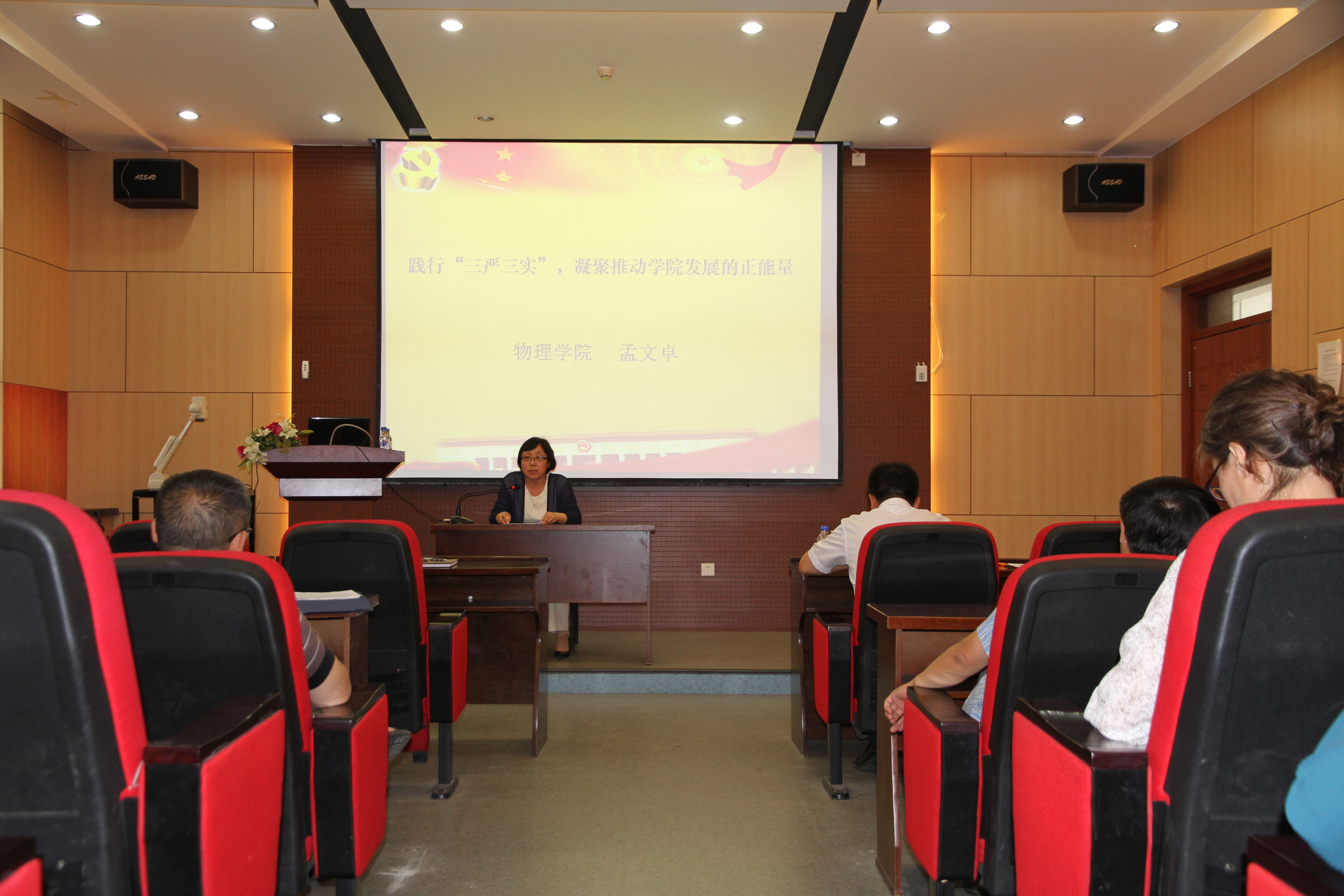 6月29日,免费看片 在中心校区物理楼333会议室召开了“三严三实”专题党课暨动员部署会,学院领导班子成员、教工党员、学生党员代表参加,会议由党委副书记孙长轮主持。