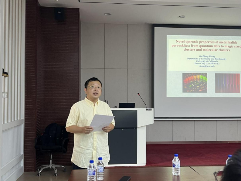 报告会上,张金中教授以深入浅出的方式,从量子点发光的基本原理出发,系统介绍了其课题组近年来在手性调控钙钛矿纳米结构方面的突破性研究成果,并深入探讨了这些发现在自旋电子学和自旋光电子学等新兴技术领域的潜在应用价值。作为国际权威期刊《JPCL》的长期编辑,张教授还结合自身经验,为在场师生分享了高水平论文写作与投稿的实用技巧,为青年学者的科研成长提供了宝贵指导。
