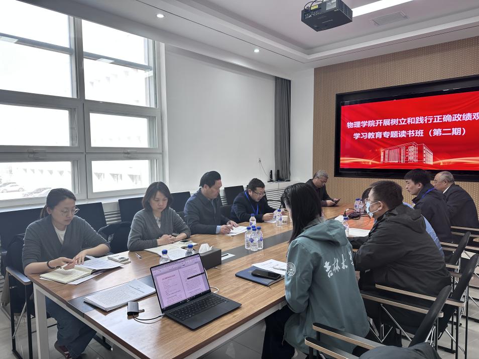 会议最后强调,树立和践行正确政绩观是一项长期的政治任务。全体党员干部要以此次读书班为契机,持续深学细悟、笃信笃行,切实将学习成果转化为推动工作的强大动力。要坚持高质量党建引领高质量发展,统筹推进学院各项事业协调发展,坚定不移推进“双一流”建设。全院上下要将树立和践行正确政绩观融入教学科研、管理服务全过程,在服务国家战略和吉林振兴发展中弘扬“吉大物理精神”,为建设中国特色世界一流物理学科作出新的更大贡献。