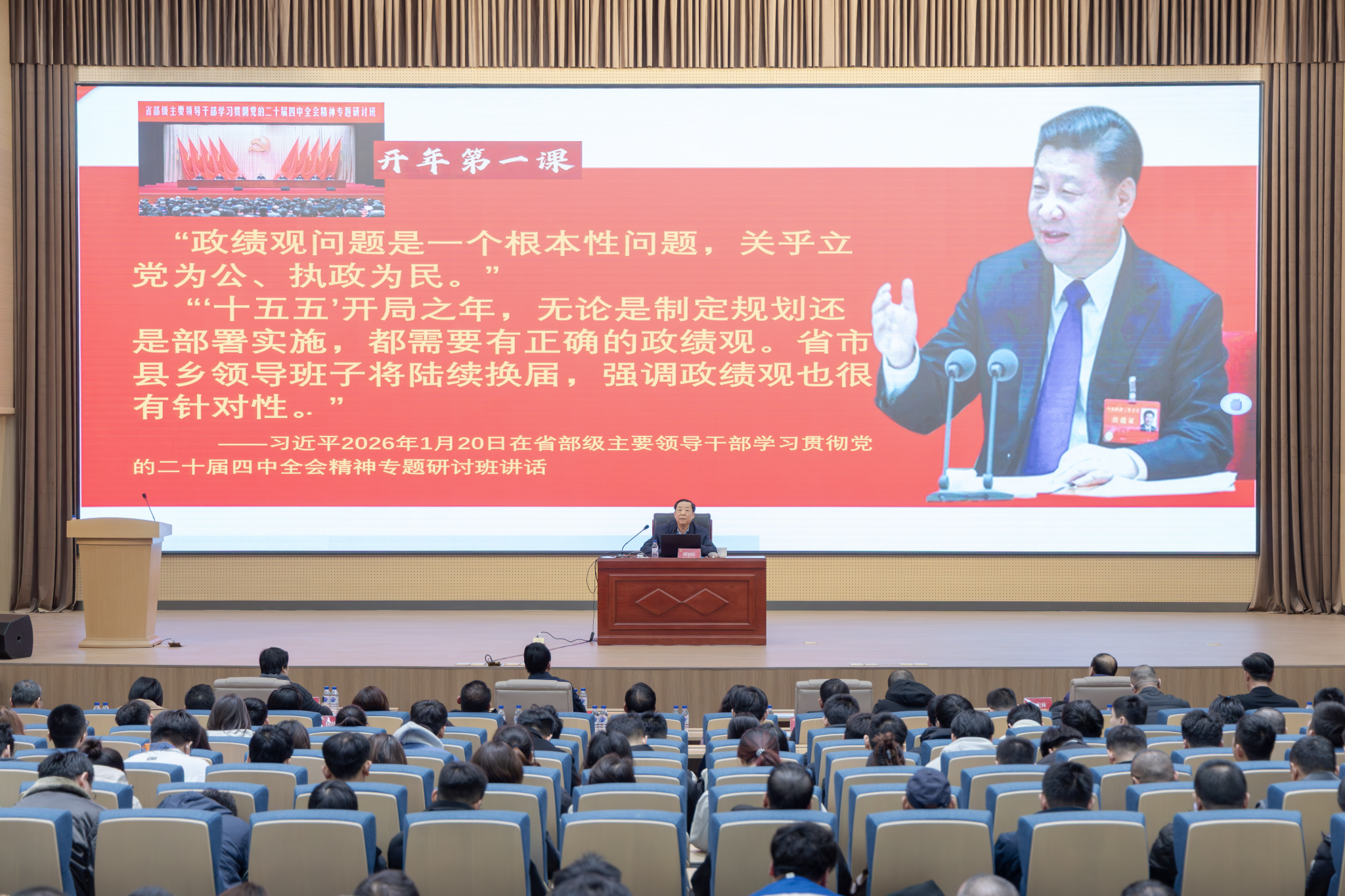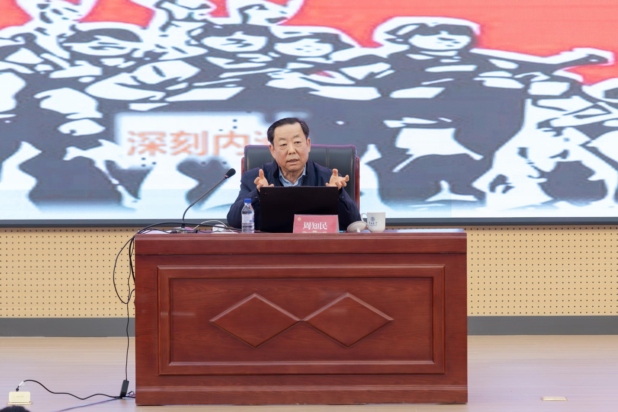 报告中,周知民以丰富生动的党史故事,鲜活诠释中国共产党人始终坚守的正确政绩观。他深情讲述长征路上“半条被子”的感人故事:3名女红军战士将仅有的一床被子剪下一半留给贫苦百姓,让群众深刻懂得“共产党就是自己有一条被子,也要剪下半条给老百姓的人”。他还分享贵州习水土城镇“女红军街”的历史见闻,以及邓颖超等老一辈革命家多年后寻找当年帮助过红军的群众、回赠新被的暖心往事,生动印证“江山就是人民,人民就是江山”的深刻内涵。同时,周知民以周恩来总理13岁立志“为中华之崛起而读书”、毛泽东同志22岁张贴《二十八画生征友启事》寻求救国同志等事例,展现共产党人从小树立为国为民崇高志向的精神境界。他特别提到,中国共产党诞生时13位代表平均年龄仅28岁,从建党到新中国成立砥砺奋斗28年,开国大典54门礼炮齐鸣28响,这些数字背后承载着党与人民同呼吸、共命运、心连心的赤子情怀,深刻彰显党始终坚持为人民服务根本宗旨、赢得革命胜利的历史必然性。