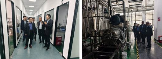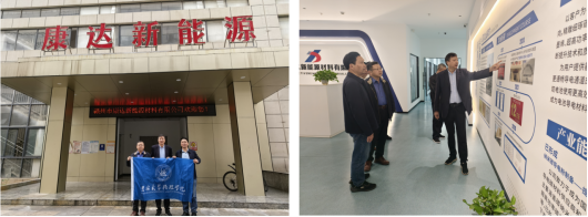 之后,一行来到赣州市康达新能源材料有限公司,董事长钟盛文介绍企业发展历程与业务布局。一行人参观实验室与生产车间,学习新能源材料研发及产业化经验。邹勃就产业发展趋势、技术创新方向虚心请教,双方就人才培养、技术合作等事宜坦诚交流。杨景表示,学院希望通过走访为赣州校友企业搭建合作桥梁,助力校友发展,也期待校友们继续关心支持母校。