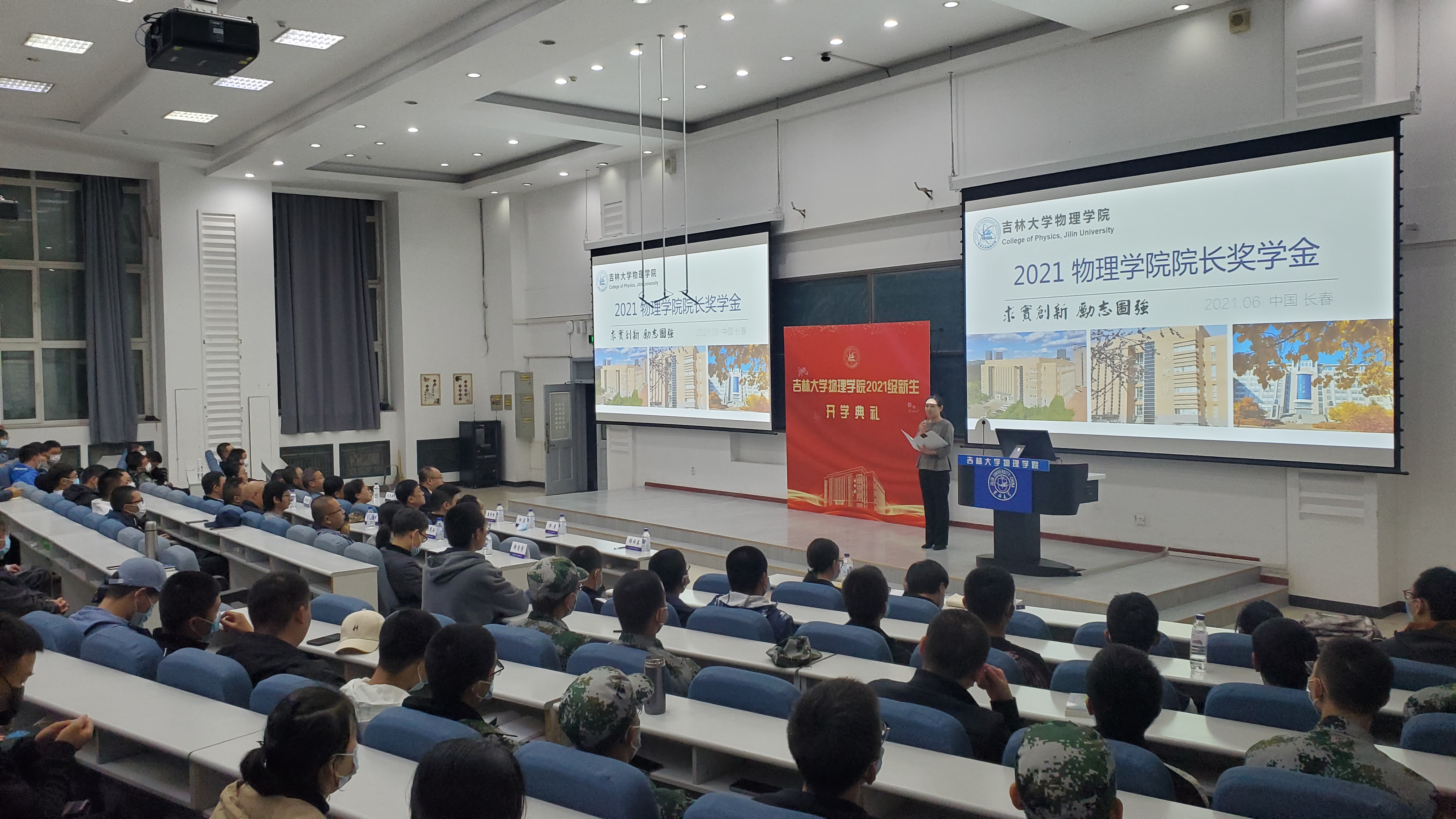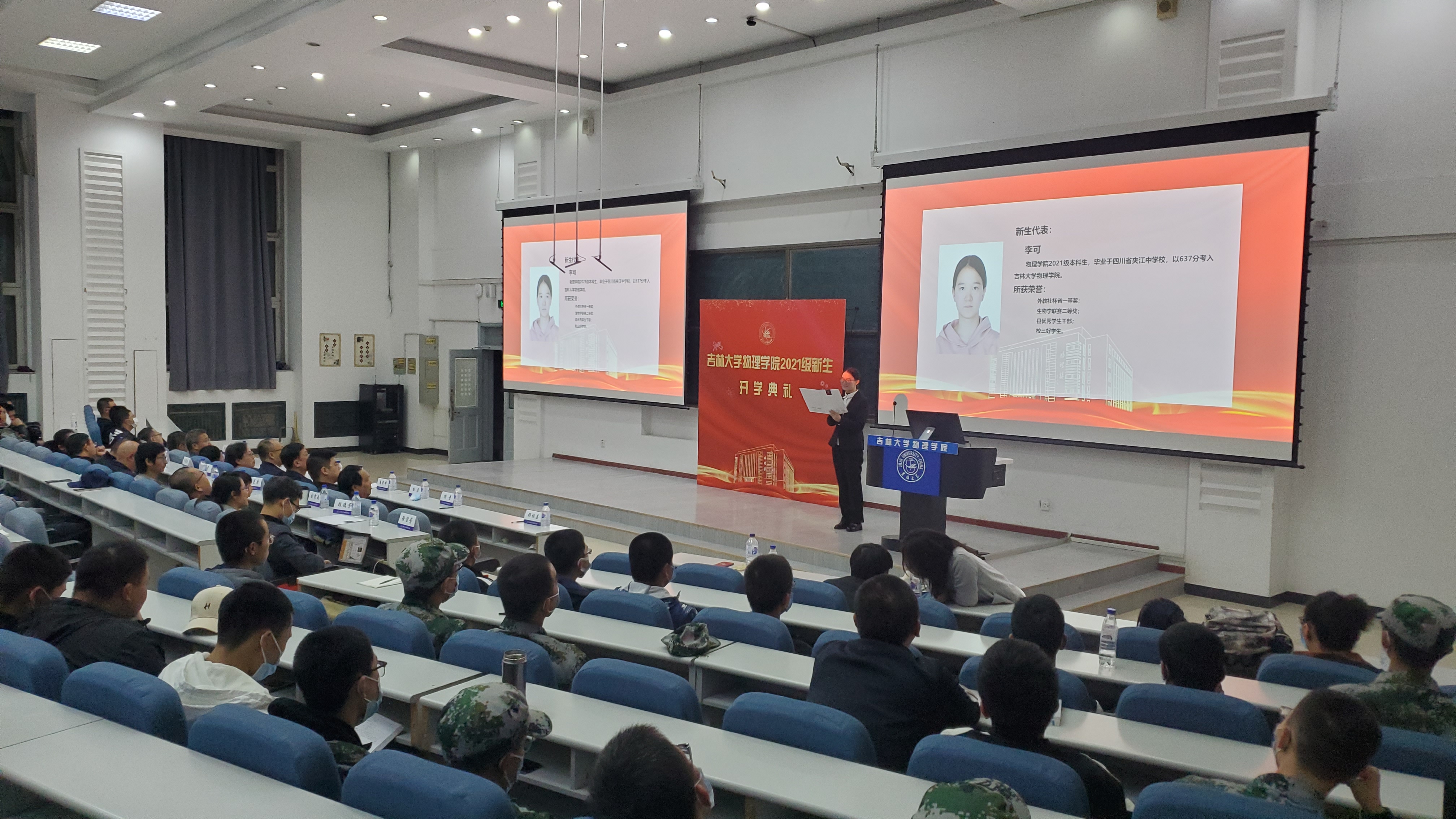 紧接着,学生代表发言。2021级李可同学作为新生代表,以昂扬的精神面貌,展现了 2021级新生不惧困难,怀着对物理的信仰,对未知的渴望,肩负着师长的嘱托,民族的希望,努力奋斗的精神品质。2020院长奖学金获得者之一的廖一朴同学作为老生代表向新同学们分享了自己在免费看片