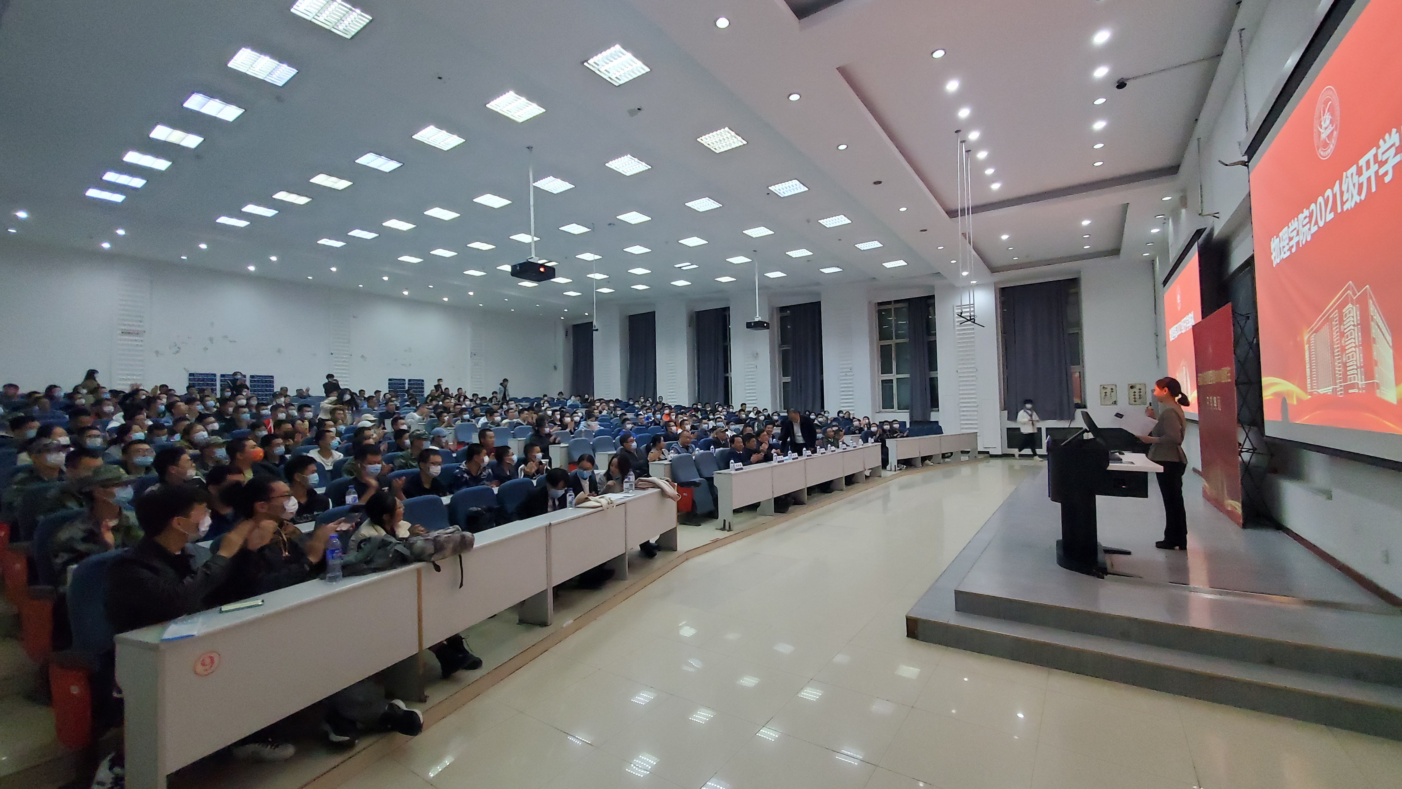 院长马琰铭上台致辞。表达了对同学们的热烈欢迎和对同学们未来发展的殷切期盼。马琰铭院长通过不同的事例和小故事,亲切地向2021级新生介绍了大学未来的生活,也表示希望作为免费看片