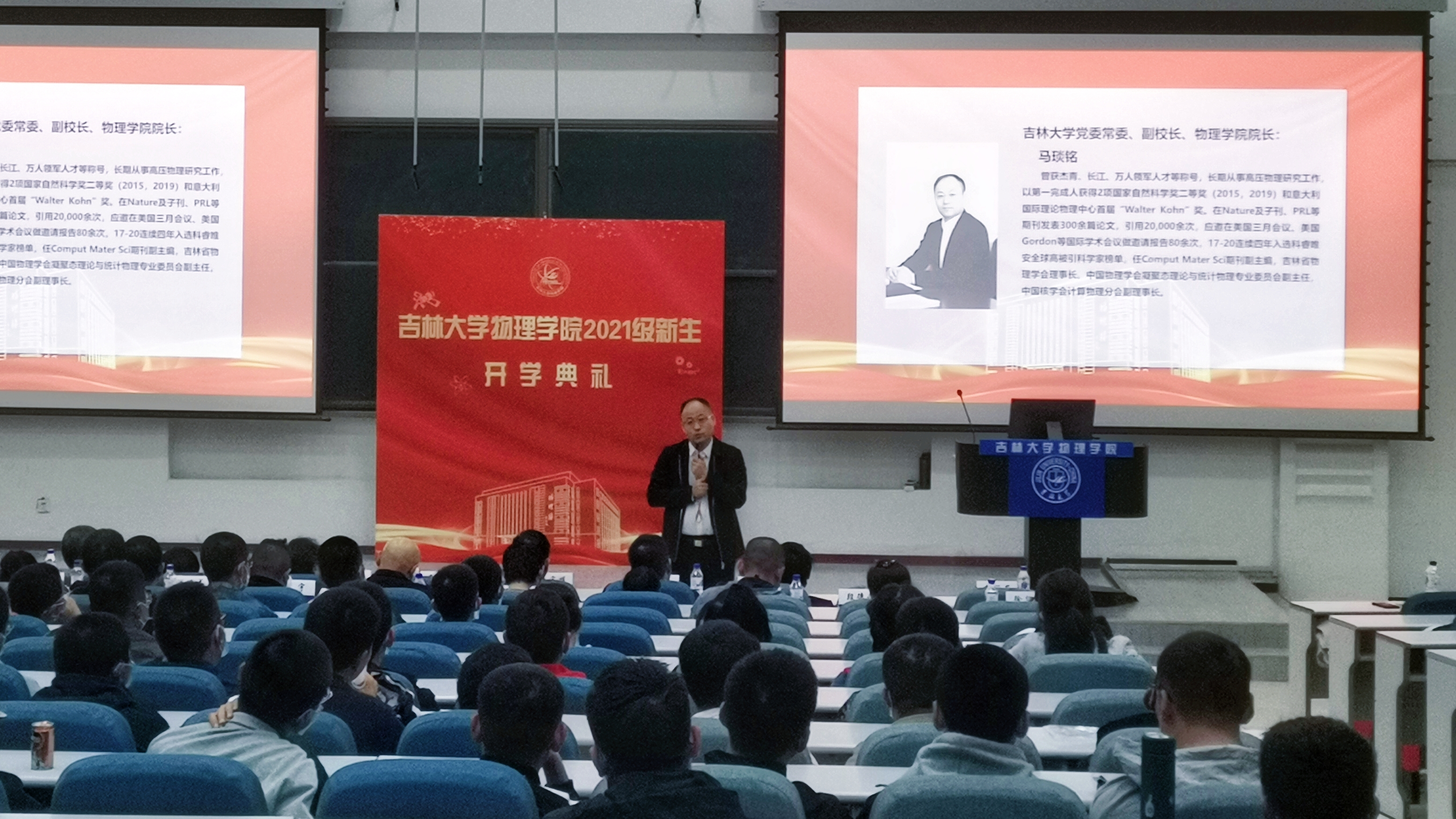始建于1952年,由余瑞璜、朱光亚、吴式枢、勾清泉、霍秉权、郑建宣、高墀恩、黄振邦、解俊民等一批物理学界泰斗以满腔的爱国之情,放弃原有的优越生活、工作条件,奔赴长春而创建,是一个有历史、有底蕴、有传承的学院,更形成了自己的文化与精神,即坚韧不拔,追求卓越。每个物理人都应该秉持这种精神,终身学习,不断进步。马琰铭院长由衷地表示,大学阶段其实是人生的分水岭,只有全力以赴的努力,珍惜每一次学习的机会,利用好各种平台和资源,提升自己的能力,才能避免被淘汰,在以后的事业中力争上游。各位新同学作为“双一流”学科学生,应该把复兴中华民族作为自己的责任,贯彻习近平主席的讲话精神,将自身的发展和国家前途命运联系在一起,尽自己一份力量推动祖国科学技术发展,这样才能让自身发展达到新的境界。