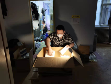 我的工作是分发志愿者防疫物资,为所有南一班长发放消毒剂、核酸检测试剂等用品,创建并管理南苑一公寓五楼的物资互助角,并免费看片