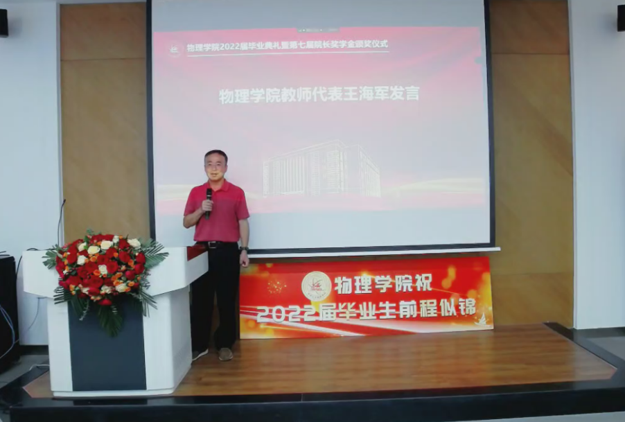 教师代表王海军老师向全体毕业生送上了美好的祝贺与期望。在他看来,人不能离开集体,在学习生活中要明白“利他”的重要性。他用亲身经历教诲同学们,一个人或许很难,但在群体中很多问题都会迎刃而解,免费看片