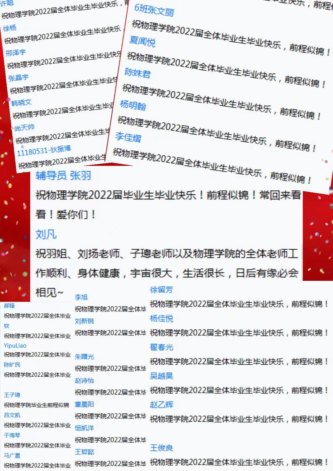 如今辉煌的成就是一代代吉大物理人以坚韧不拔、追求卓越的精神几十年如一日奋斗得来的,希望在同学们共同努力下,让物理学科更好、更强。
