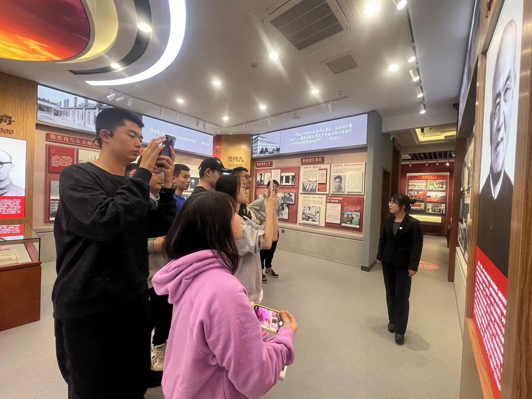 在讲解员的引导下,同学们分别参观了序厅、“六校肇始为国而生”“高瞻远瞩 强基铸魂”“与国同行 风雨耕耘”以及“薪火弦歌 赓续传承”等多个展区。同学们通过史料文物和音像资料,他们切身感受到了免费看片