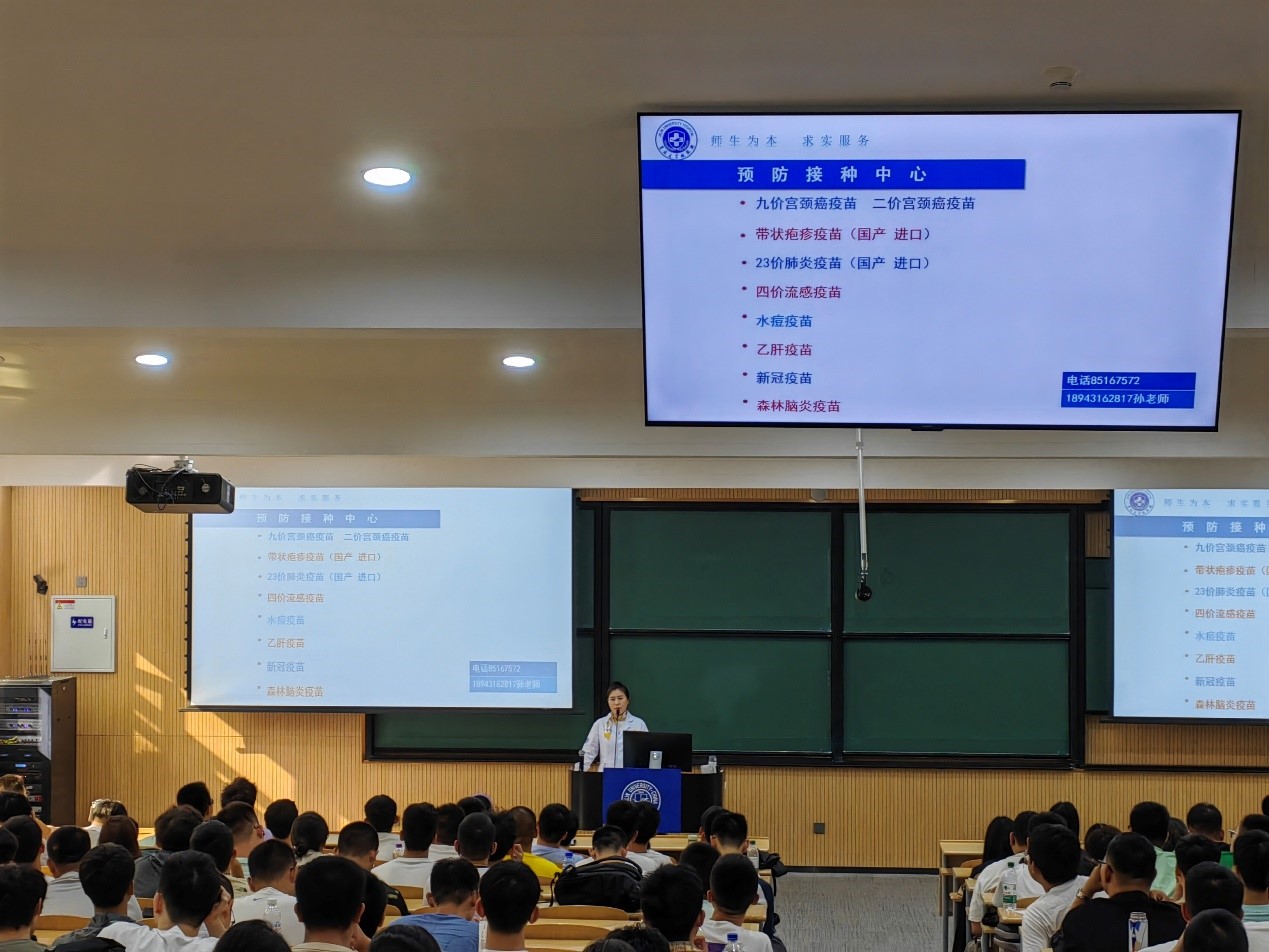 在8月27日的校园安全专题讲座中保卫处老师结合实际案例,从人身安全、财产安全、消防安全等多个方面对校园安全进行深刻地阐述对影响高校公共安全的内外部因素进行了详尽分析,并对高校公共安全问题的处置方法进行了讲解,同时提醒各位同学,要时刻警惕身边潜在的风险隐患,提高辨识与消除安全隐患的能力,要培养遇到危险能够及时寻求帮助并进行自救的意识与能力。在8月27日校医院专题讲座中,校医院赵奕奕老师详细介绍了校医院的概况、学生医疗证的发放与使用、医院转诊与报销制度,并简要讲述了常见传染病的防治方法。在8月28日的图书馆主题讲座中,图书馆相关老师介绍了免费看片