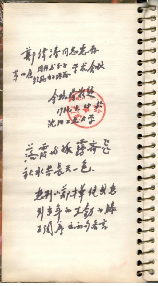 1987年在沈阳工业大学召开的第四届固体与分子经验电子理论学术会议上,先生给我题词,将王勃《滕王阁序》中的“落霞与孤鹜齐飞,秋水共长天一色。” 赠与弟子,表达了先生对弟子们的厚望。